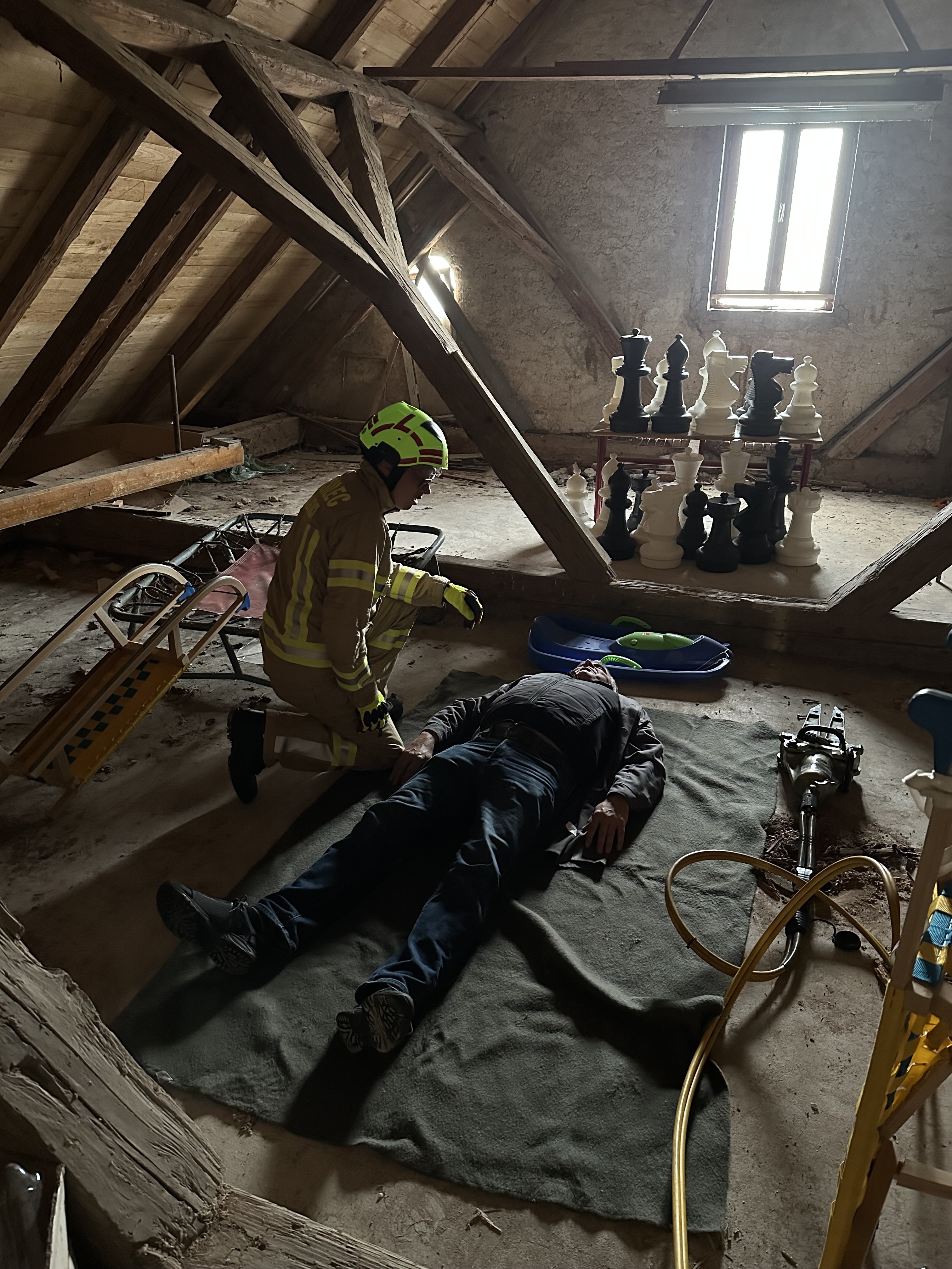 V sredo, 22. 10. 2025, smo na šoli v sklopu meseca požarne varnosti izvedli vajo evakuacije. Na šoli smo izvedli simulacijo delovne nesreče na podstrešju, kjer je del ostrešja pod sabo pokopal našega hišnika. Na pomoč so prihitela tri gasilska društva PGD Radenci, Prelesje in Stari trg ob Kolpi s 15 gasilci. Učenci šole in otroci iz vrtca so se pod nadzorom učiteljev, vzgojiteljic in drugih zaposlenih varno evakuirali na zbirno mesto izven šole, gasilci pa so temeljito pregledali prostore šole in evakuirali tudi poškodovano osebo.