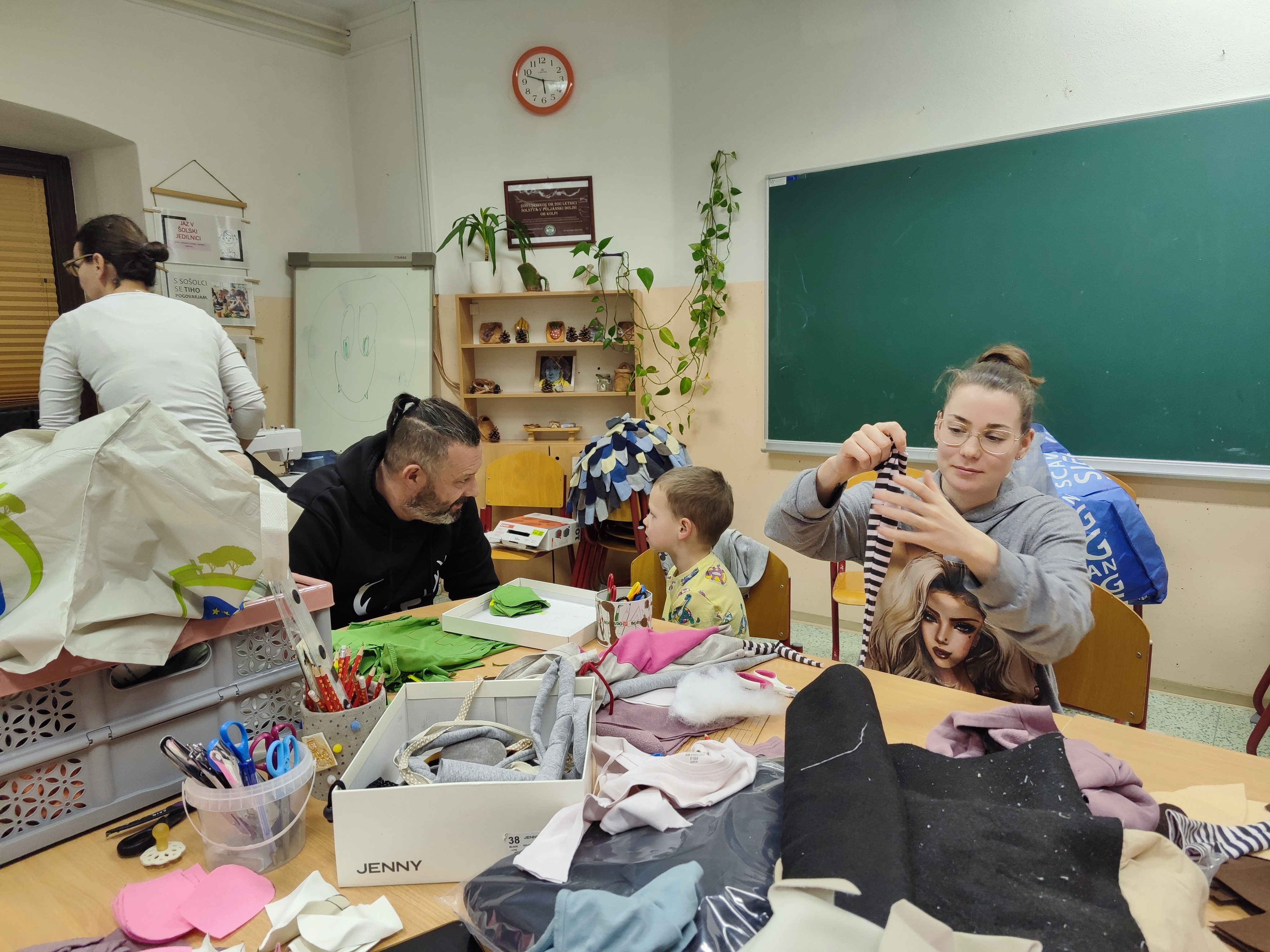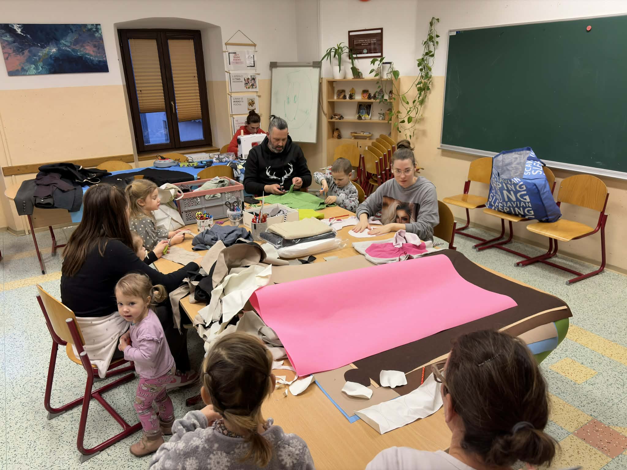 Otroci in starši so skupaj izdelovali pustne kostume mišk in sovic. Pri tem smo uporabili različne materiale, kot so koprena, filc in stara oblačila, ki so dobila povsem novo podobo. Na igriv način smo tako v prakso prenesli idejo recikliranja ter pokazali, da lahko z malo domišljije ustvarimo čudovite izdelke tudi iz že uporabljenih materialov.