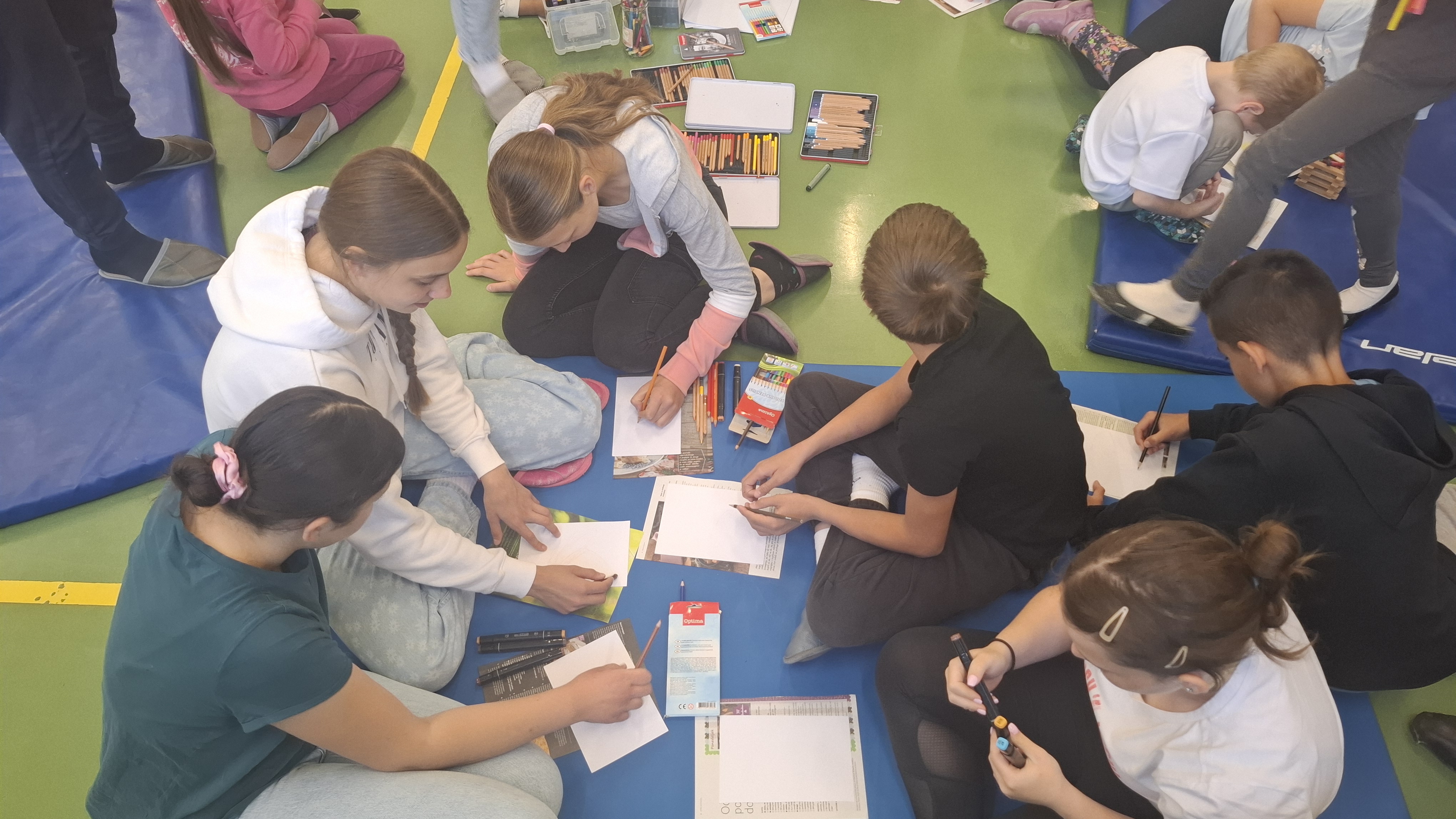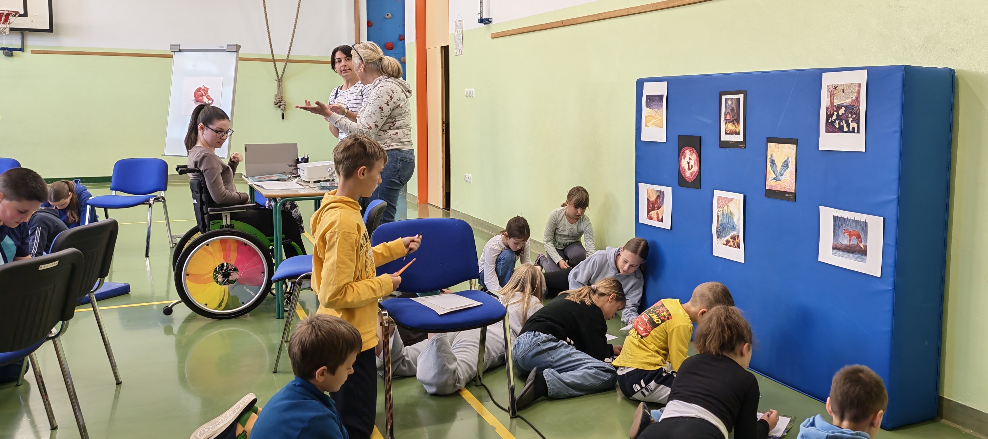 Dogodek smo začeli z uvodnim nagovorom, s katerim smo odprli vrata v čarobni, nekoliko zasnežen svet domišljije. Učenci so z zanimanjem prisluhnili pogovoru z avtorico, v katerem smo izvedeli več o njenem ustvarjanju, navdihu ter izzivih, ki jih premaguje na svoji poti. Tudi ilustratorka knjige, naša učiteljica Tamara Pintarič, nam je podala vpogled v zakulisje nastajanja živali in čarobnega okolja v katerem živijo.