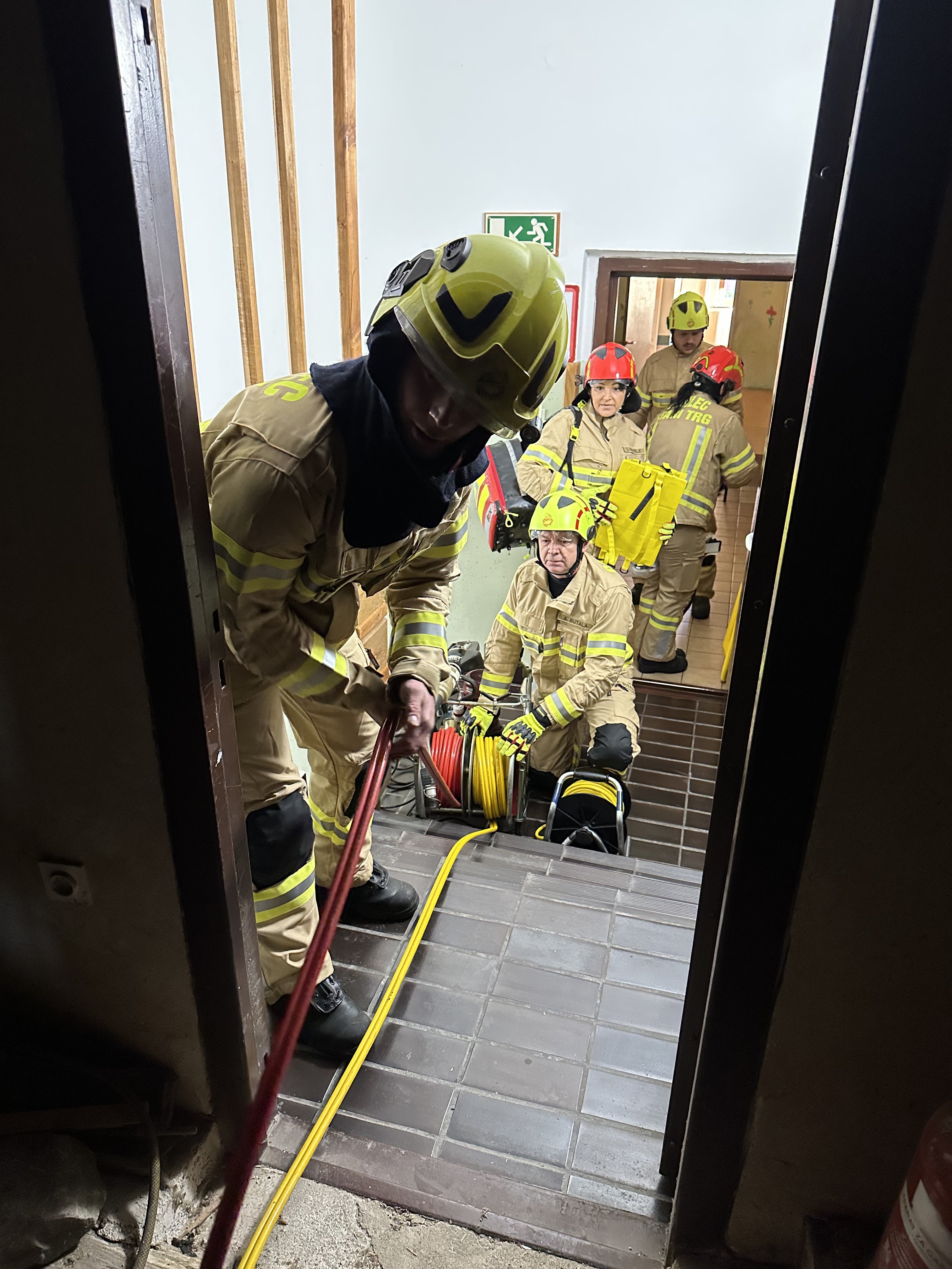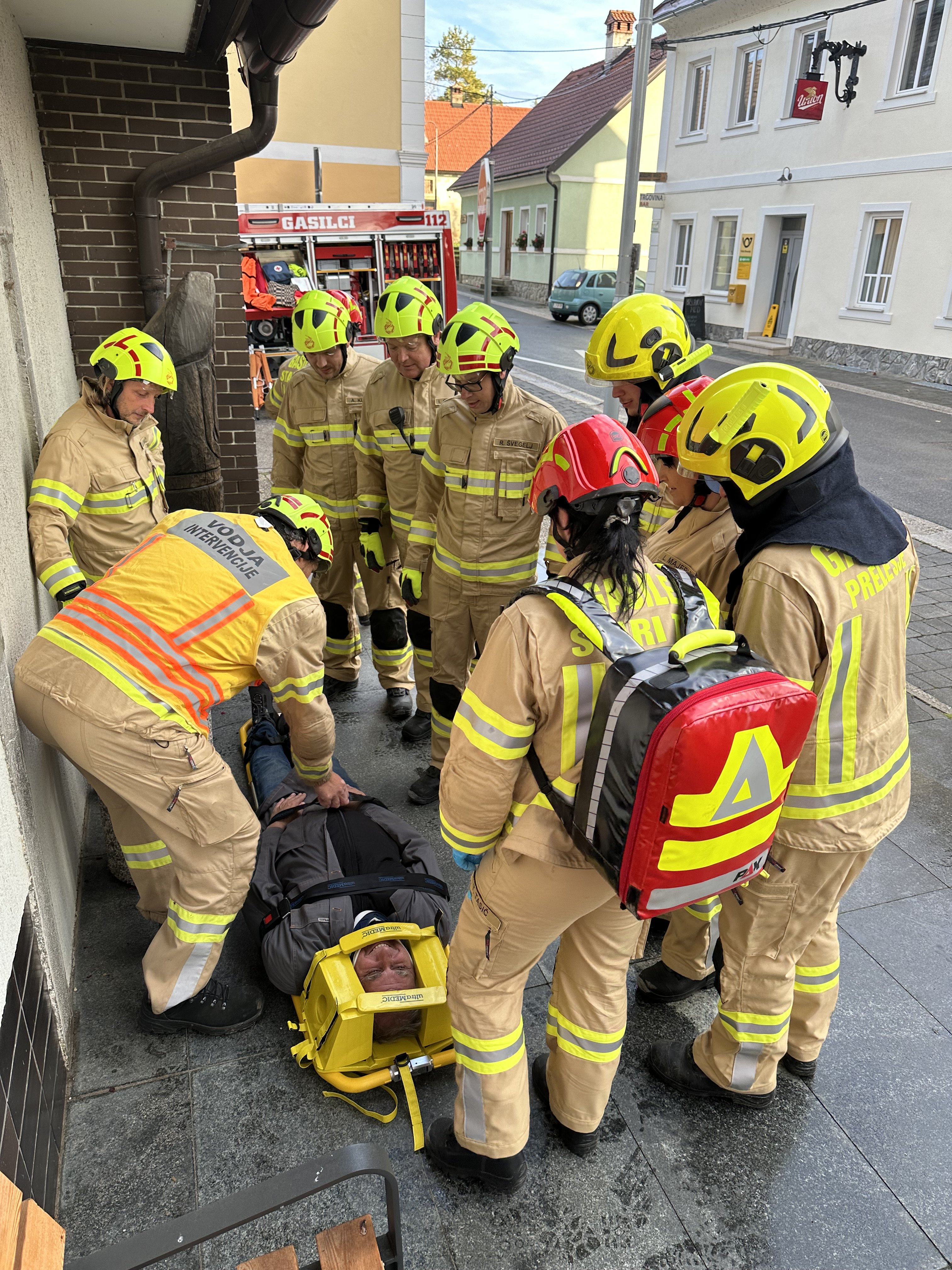 V sredo, 22. 10. 2025, smo na šoli v sklopu meseca požarne varnosti izvedli vajo evakuacije. Na šoli smo izvedli simulacijo delovne nesreče na podstrešju, kjer je del ostrešja pod sabo pokopal našega hišnika. Na pomoč so prihitela tri gasilska društva PGD Radenci, Prelesje in Stari trg ob Kolpi s 15 gasilci. Učenci šole in otroci iz vrtca so se pod nadzorom učiteljev, vzgojiteljic in drugih zaposlenih varno evakuirali na zbirno mesto izven šole, gasilci pa so temeljito pregledali prostore šole in evakuirali tudi poškodovano osebo.