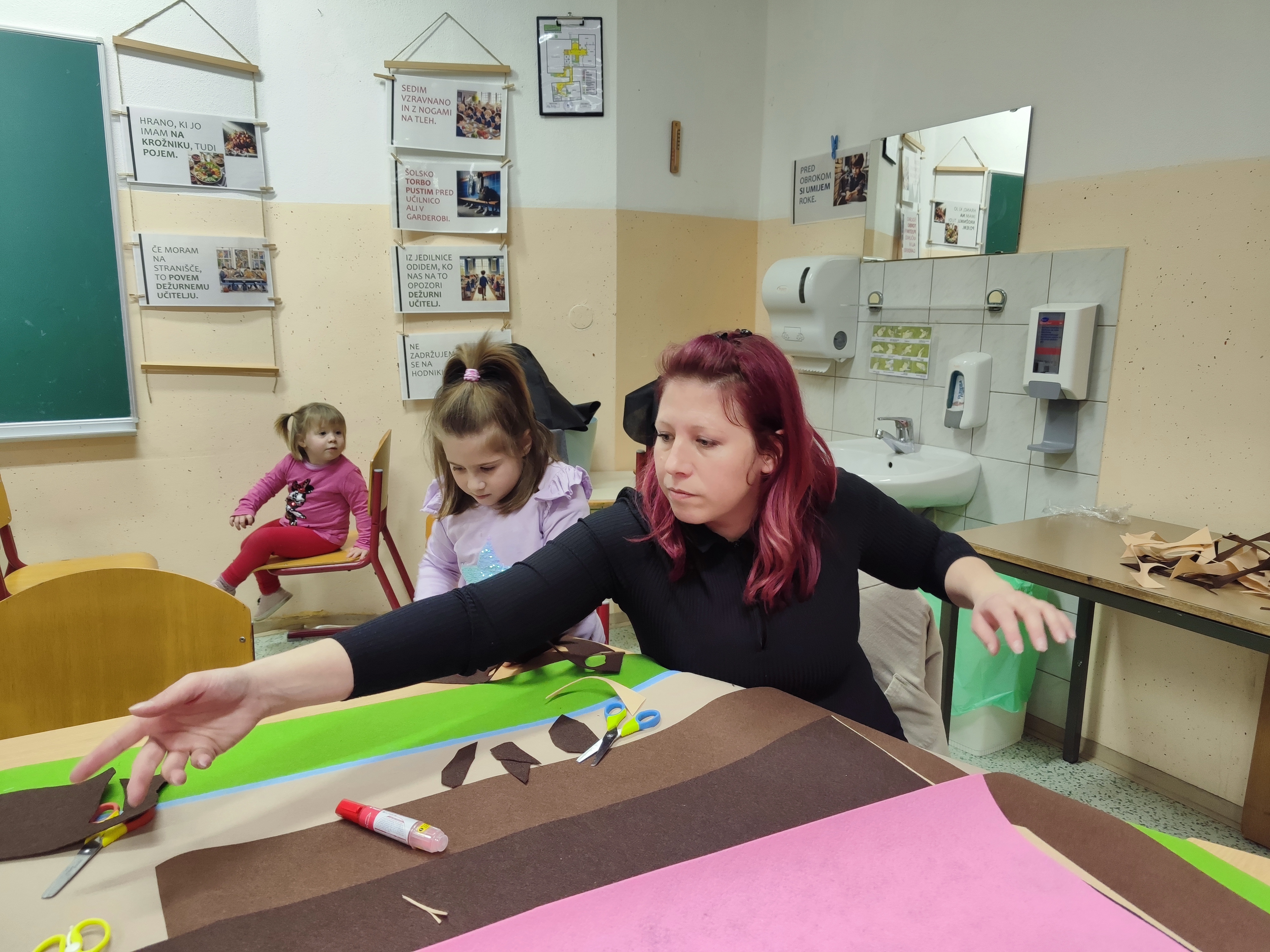 Otroci in starši so skupaj izdelovali pustne kostume mišk in sovic. Pri tem smo uporabili različne materiale, kot so koprena, filc in stara oblačila, ki so dobila povsem novo podobo. Na igriv način smo tako v prakso prenesli idejo recikliranja ter pokazali, da lahko z malo domišljije ustvarimo čudovite izdelke tudi iz že uporabljenih materialov.