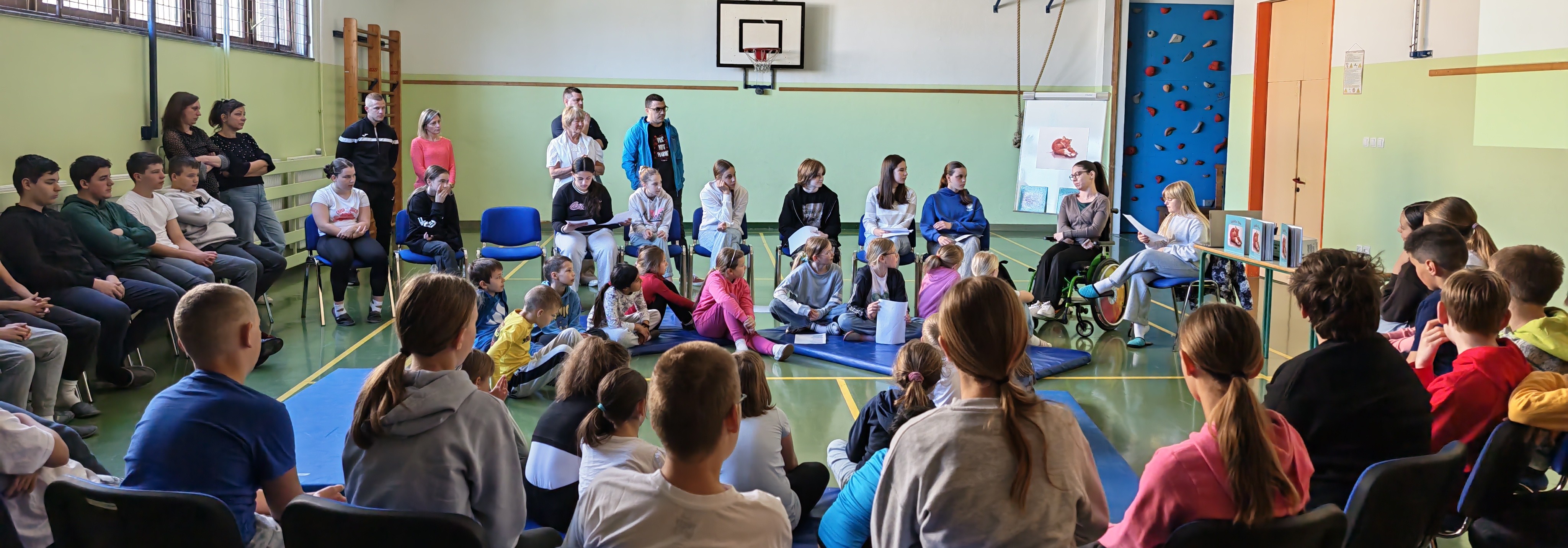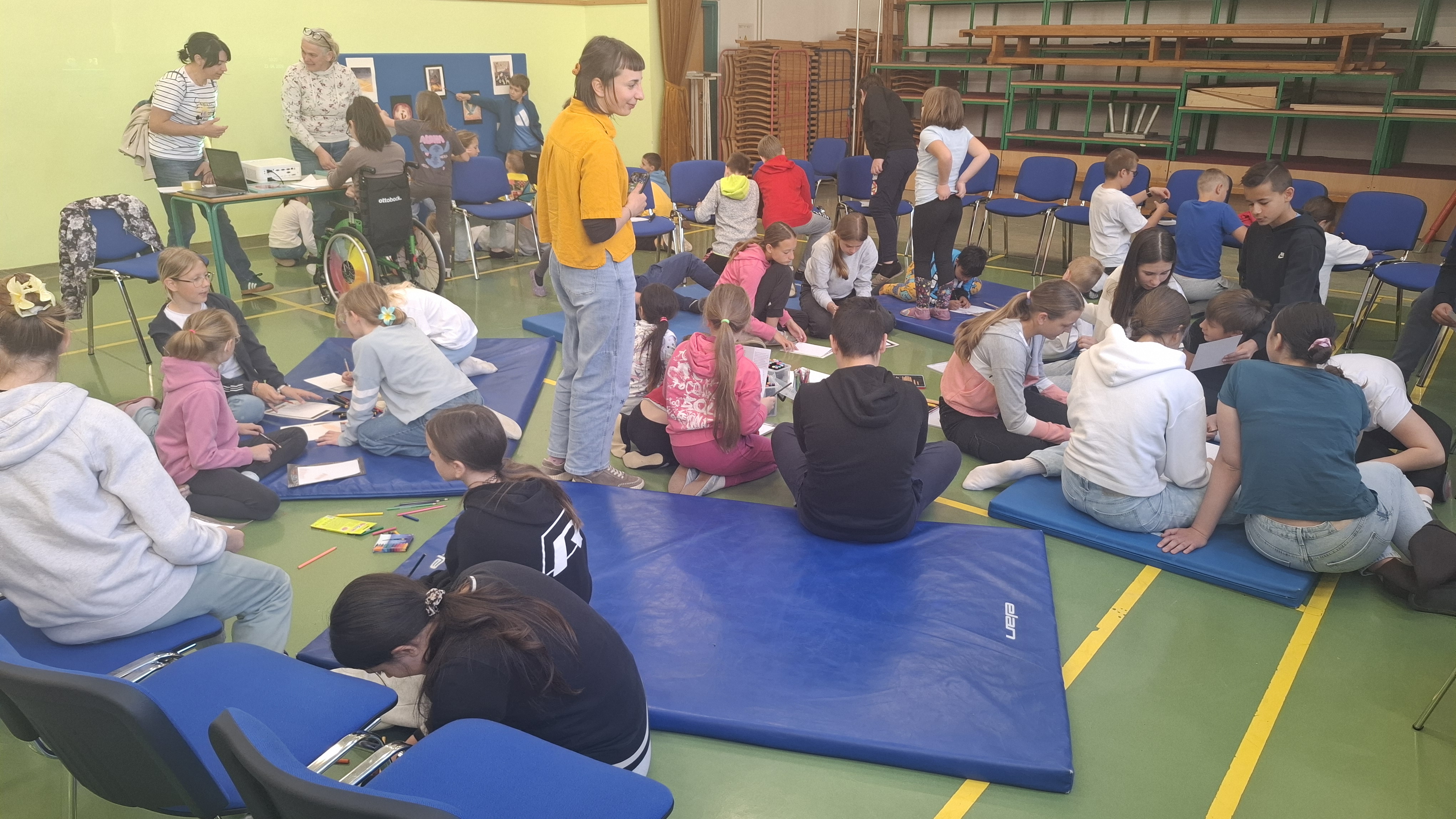Dogodek smo začeli z uvodnim nagovorom, s katerim smo odprli vrata v čarobni, nekoliko zasnežen svet domišljije. Učenci so z zanimanjem prisluhnili pogovoru z avtorico, v katerem smo izvedeli več o njenem ustvarjanju, navdihu ter izzivih, ki jih premaguje na svoji poti. Tudi ilustratorka knjige, naša učiteljica Tamara Pintarič, nam je podala vpogled v zakulisje nastajanja živali in čarobnega okolja v katerem živijo.